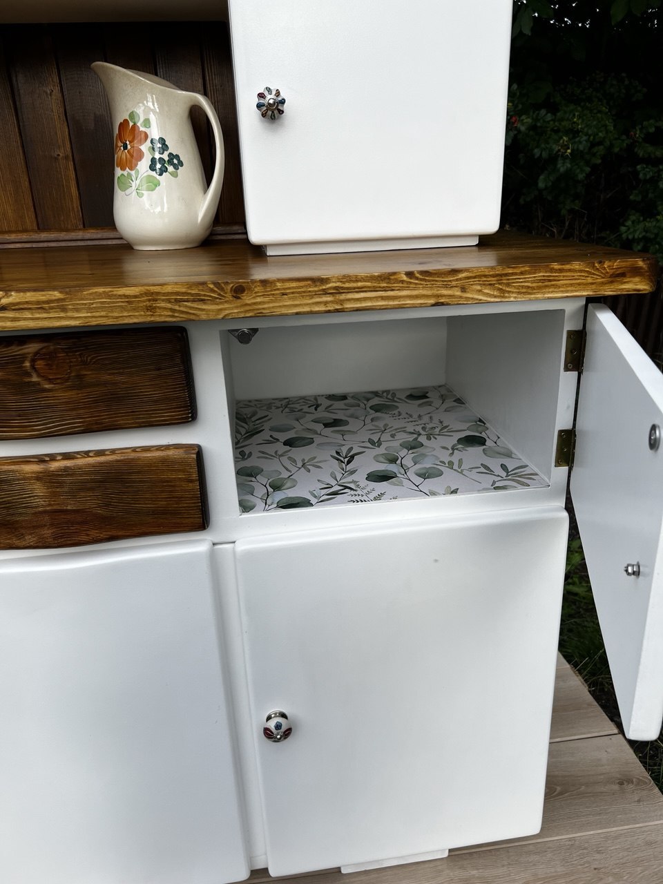 „Biała Dama” to mebel, który natychmiast przyciąga wzrok – zarówno w klasycznej kuchni, jak i nowoczesnym wnętrzu w stylu retro czy boho.