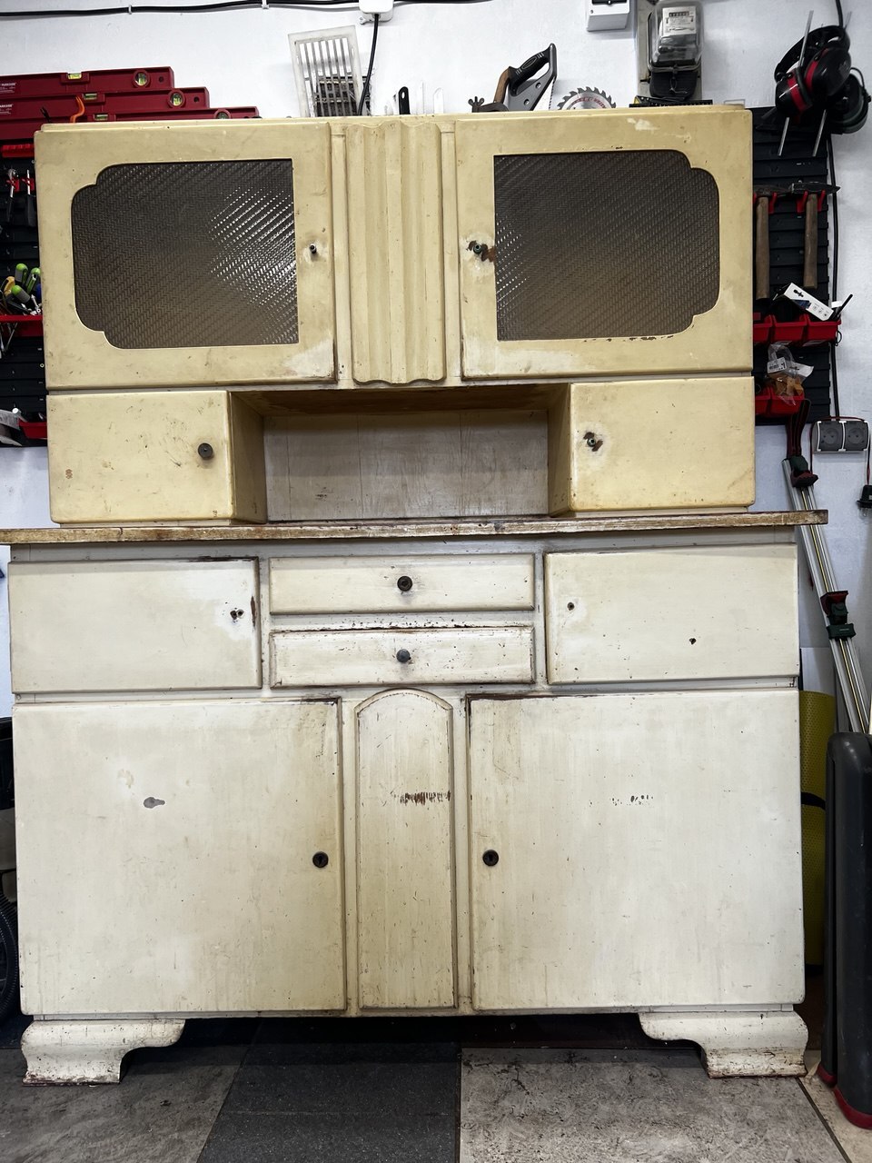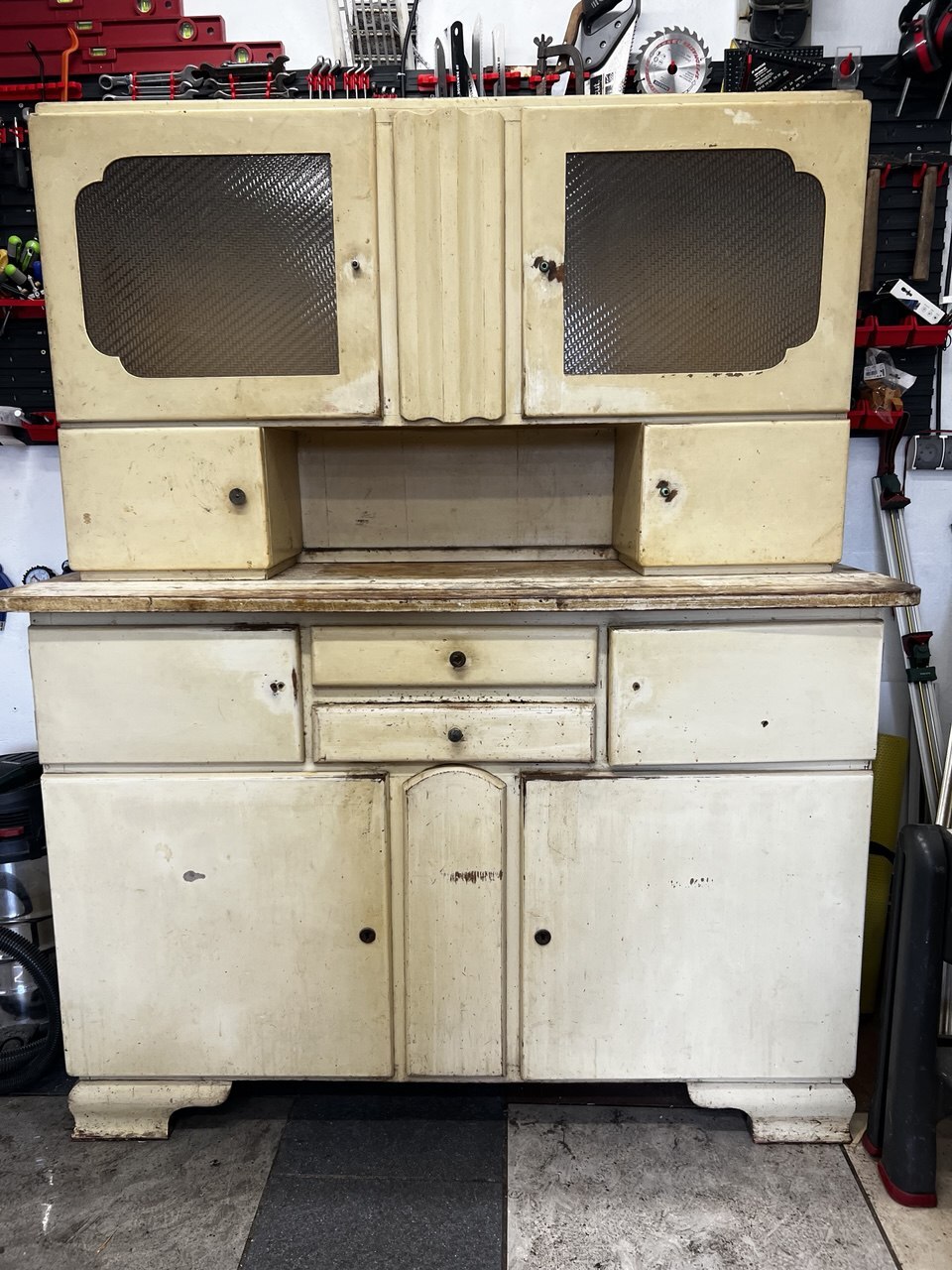 Ten kredens to klasyka stylu PRL – wykonany w 100% z drewna, stabilny, kompletny i gotowy na drugie życie.